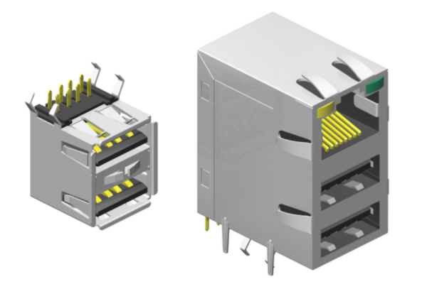 USB 1.x-2.0 Connector Type A Triple port THT 90°